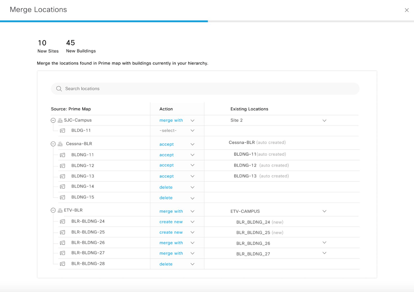 Keep in mind that Catalyst Center may have more groups/levels than the Spaces Excel template supports (3), so it may be best to merge Catalyst Center and skip the Excel template.