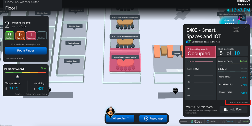 Combine Webex device, IoT Sensor telemetry, and calendar event data for room occupancy metrics, ghost booking rates, and more.