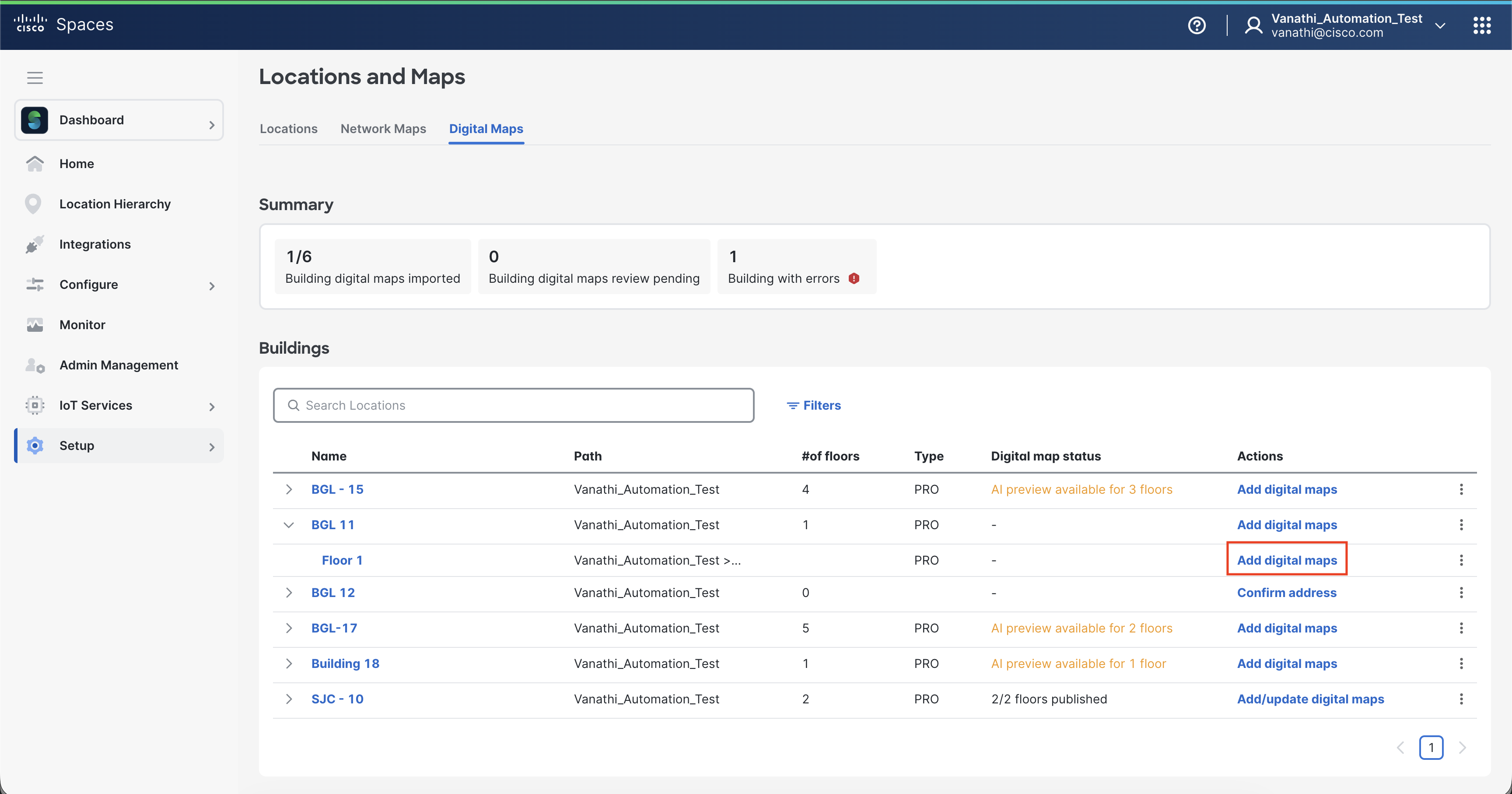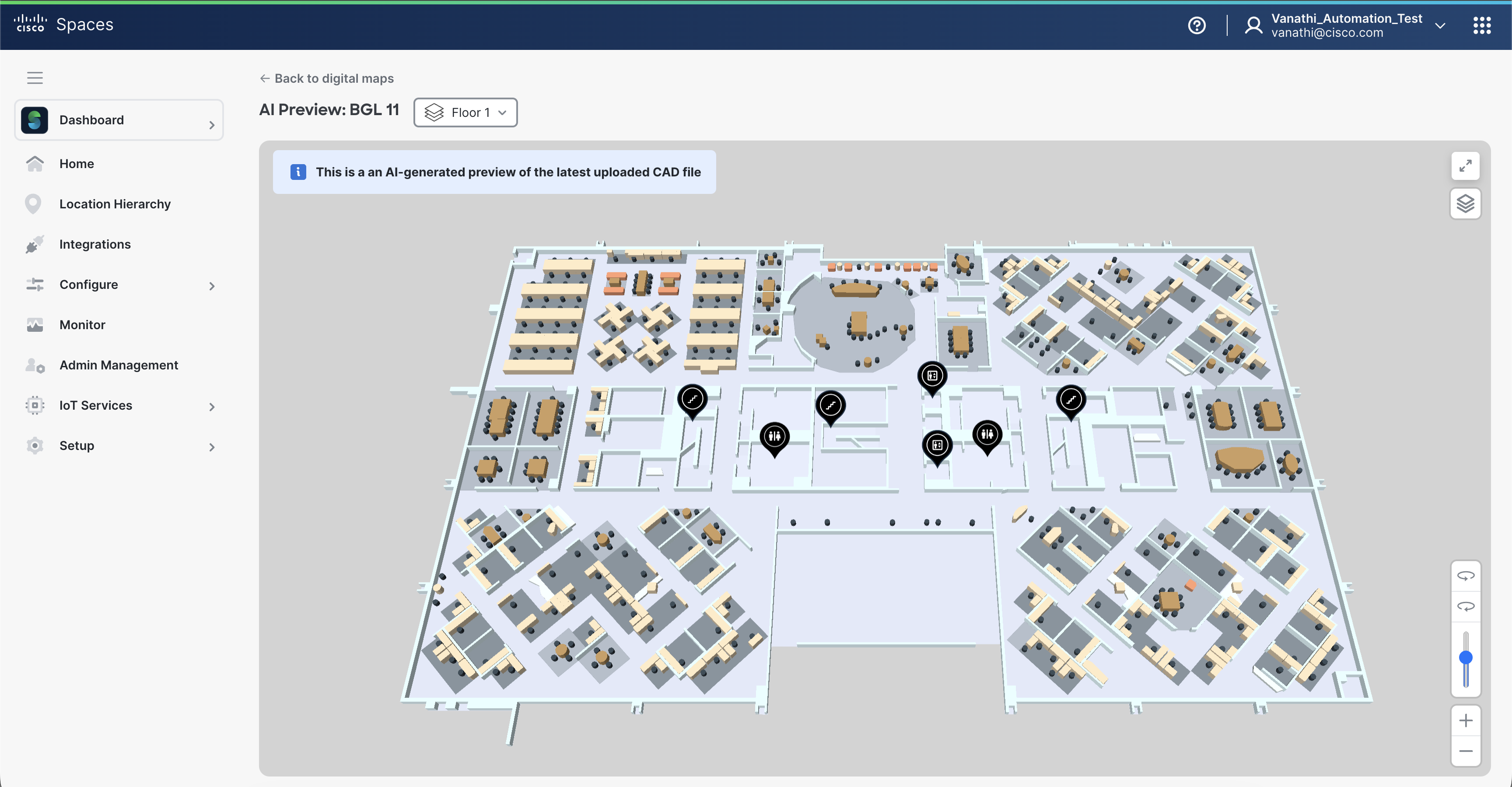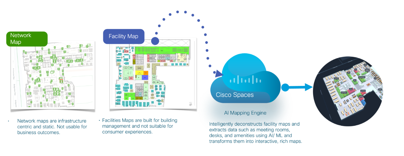 Digital Maps in Cisco Spaces provide visual representations of the spaces, enhancing navigation and planning.