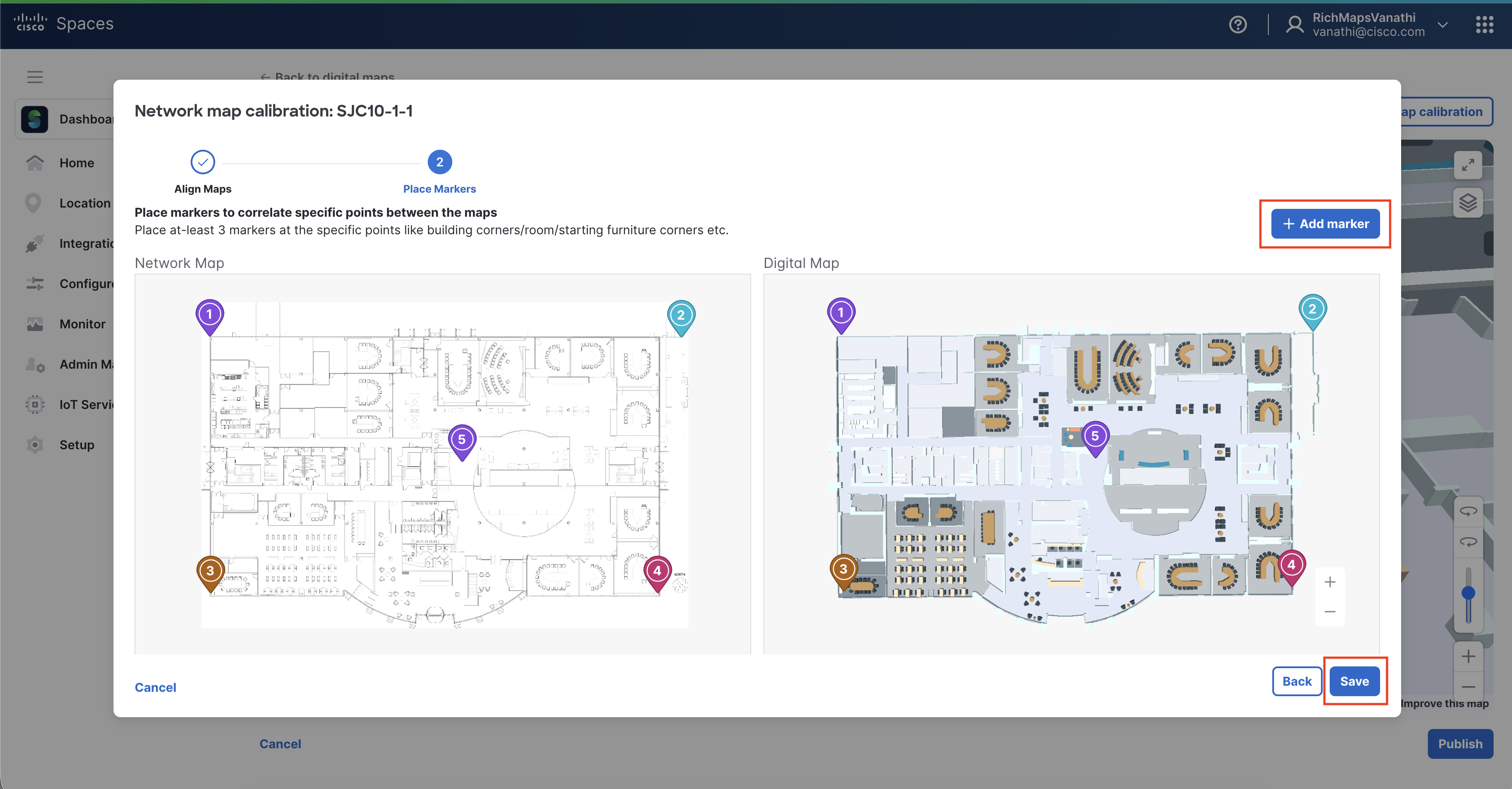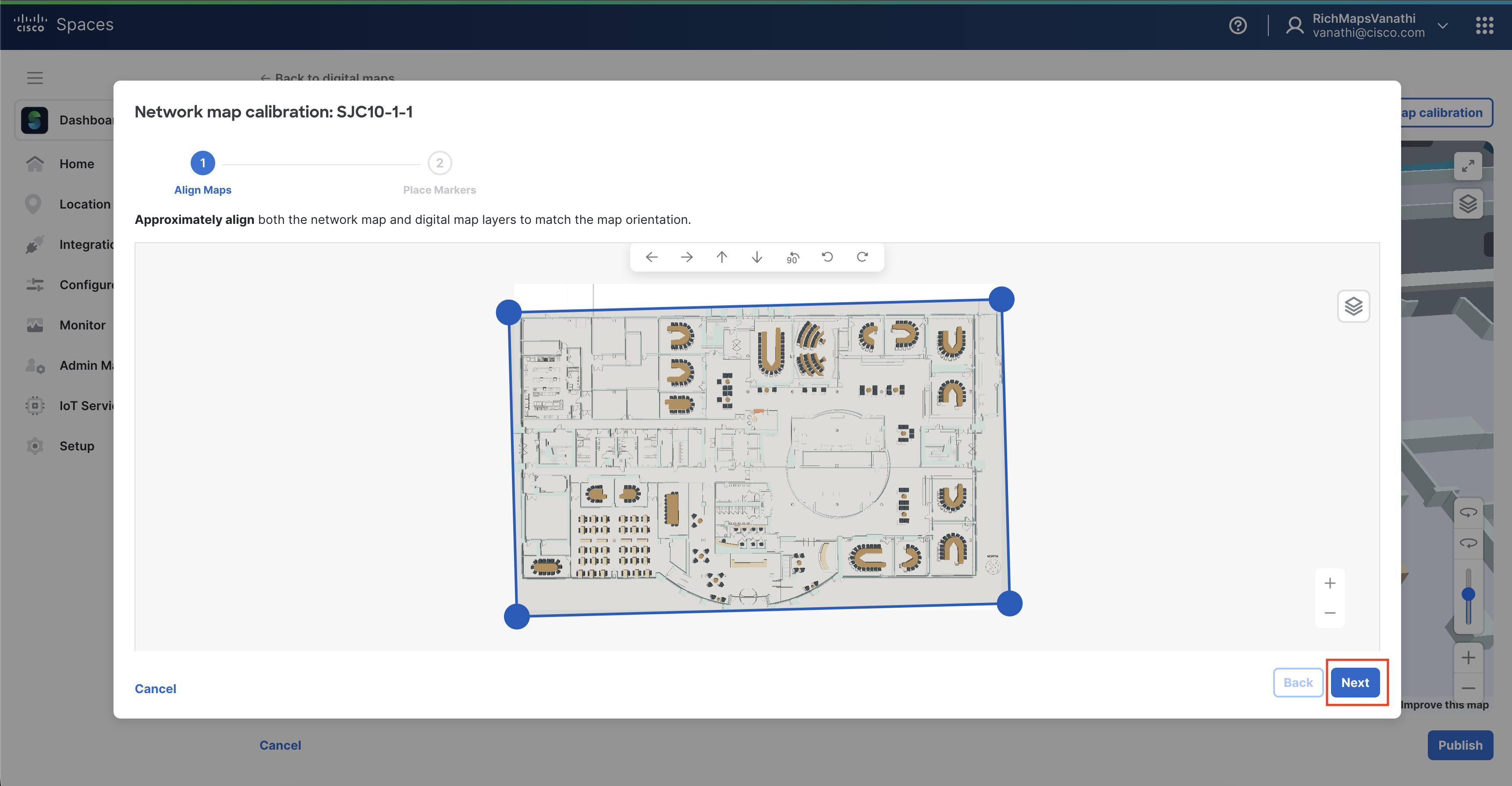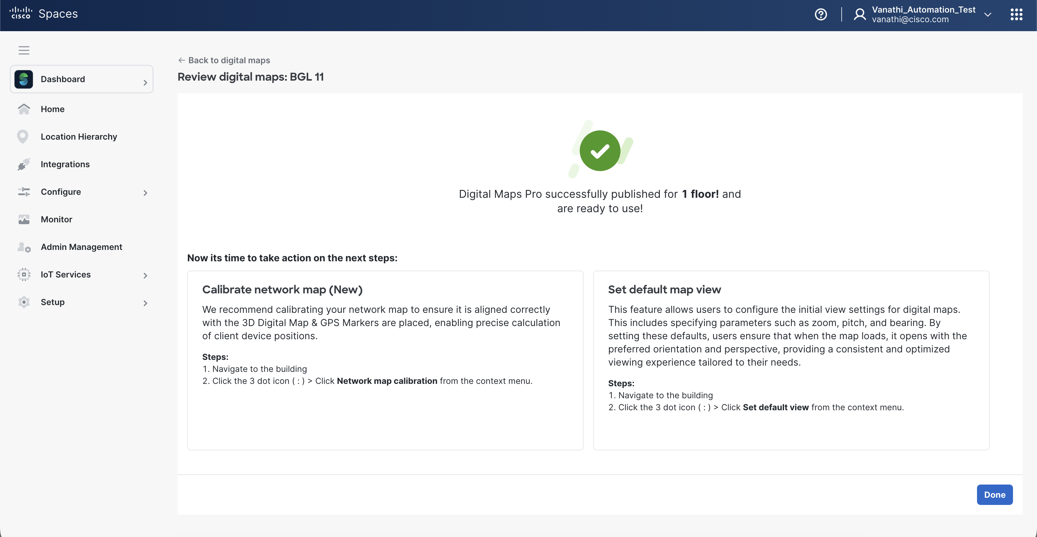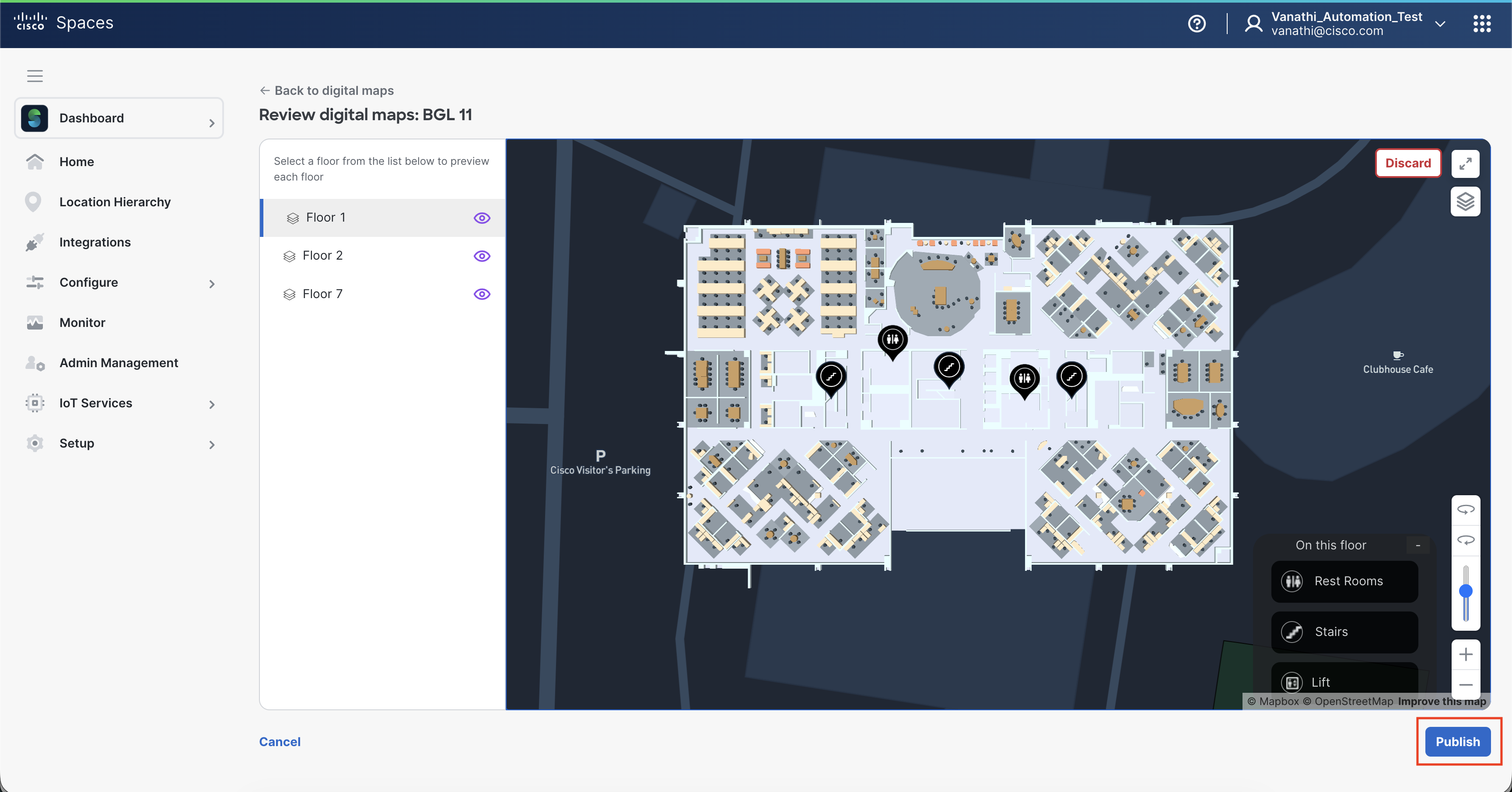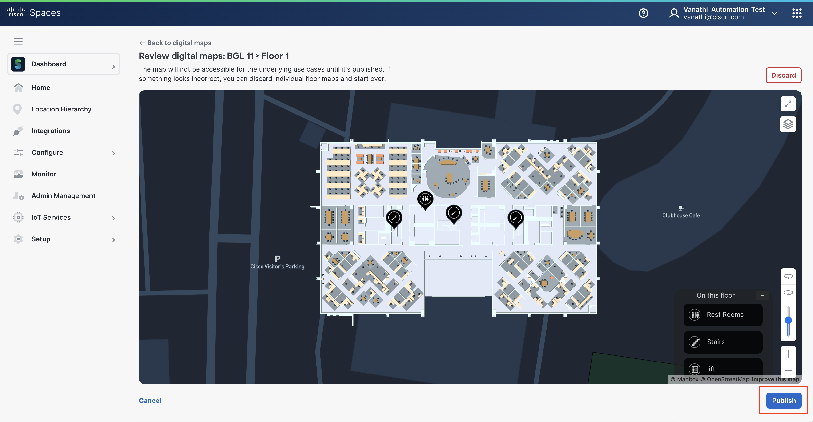 Publish the building to make the Digital Map available in Cisco Spaces.