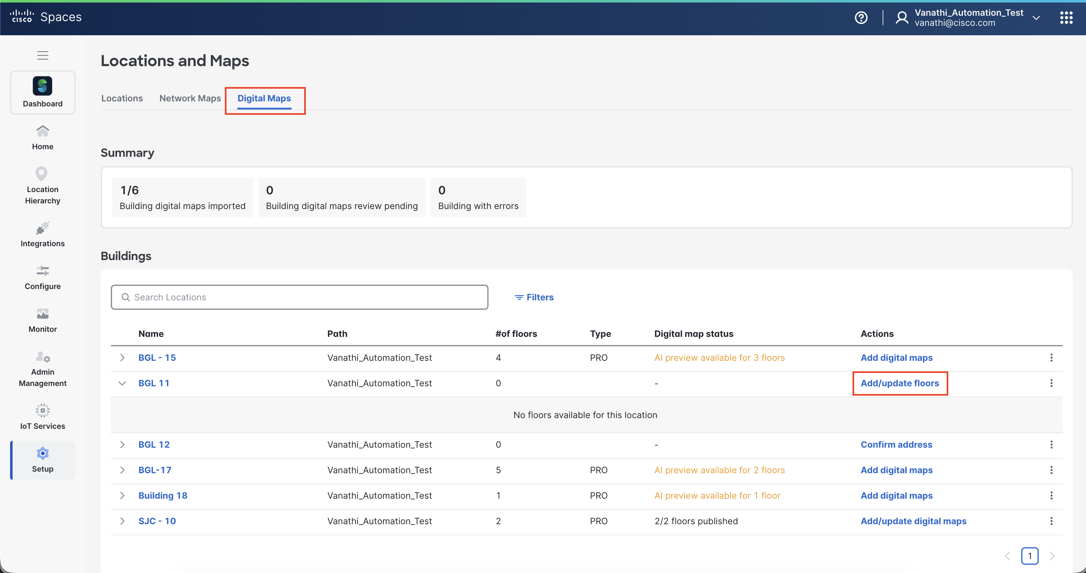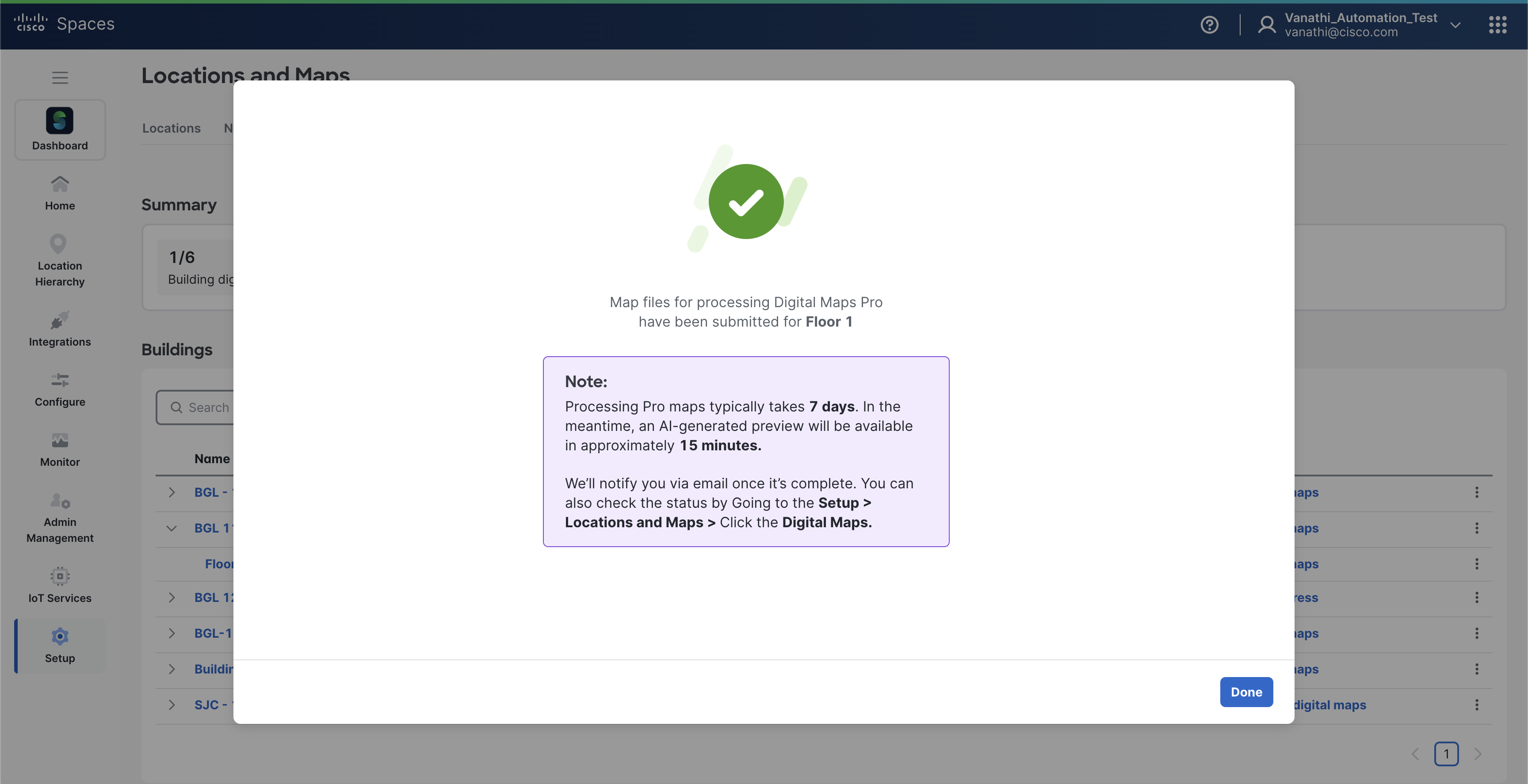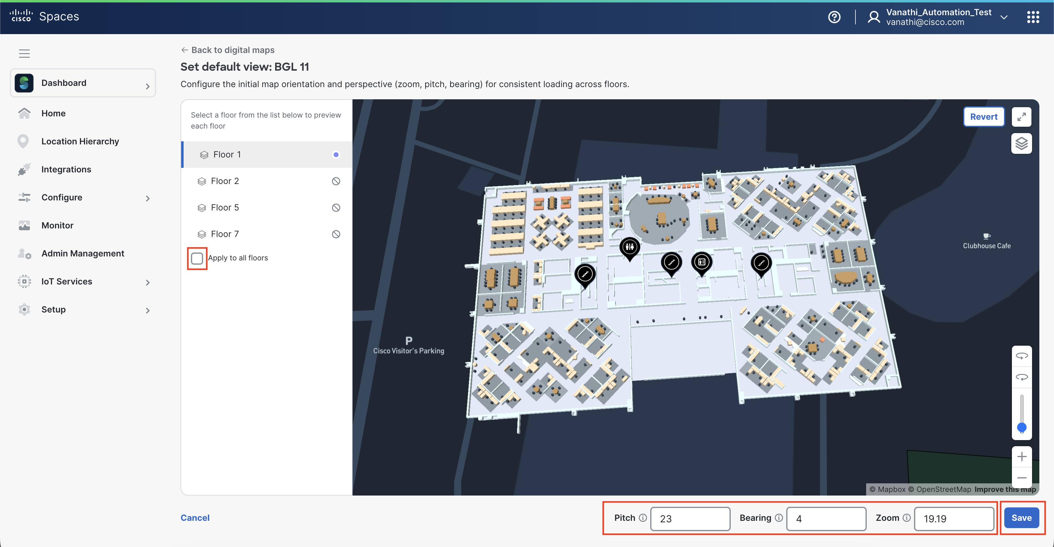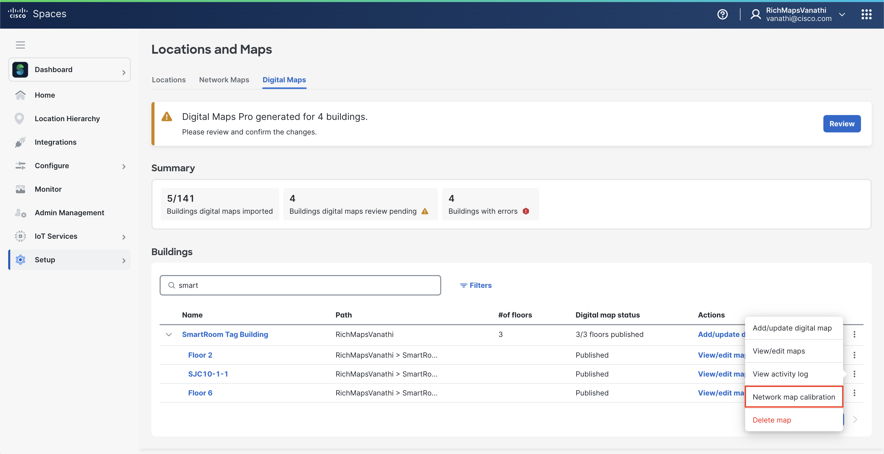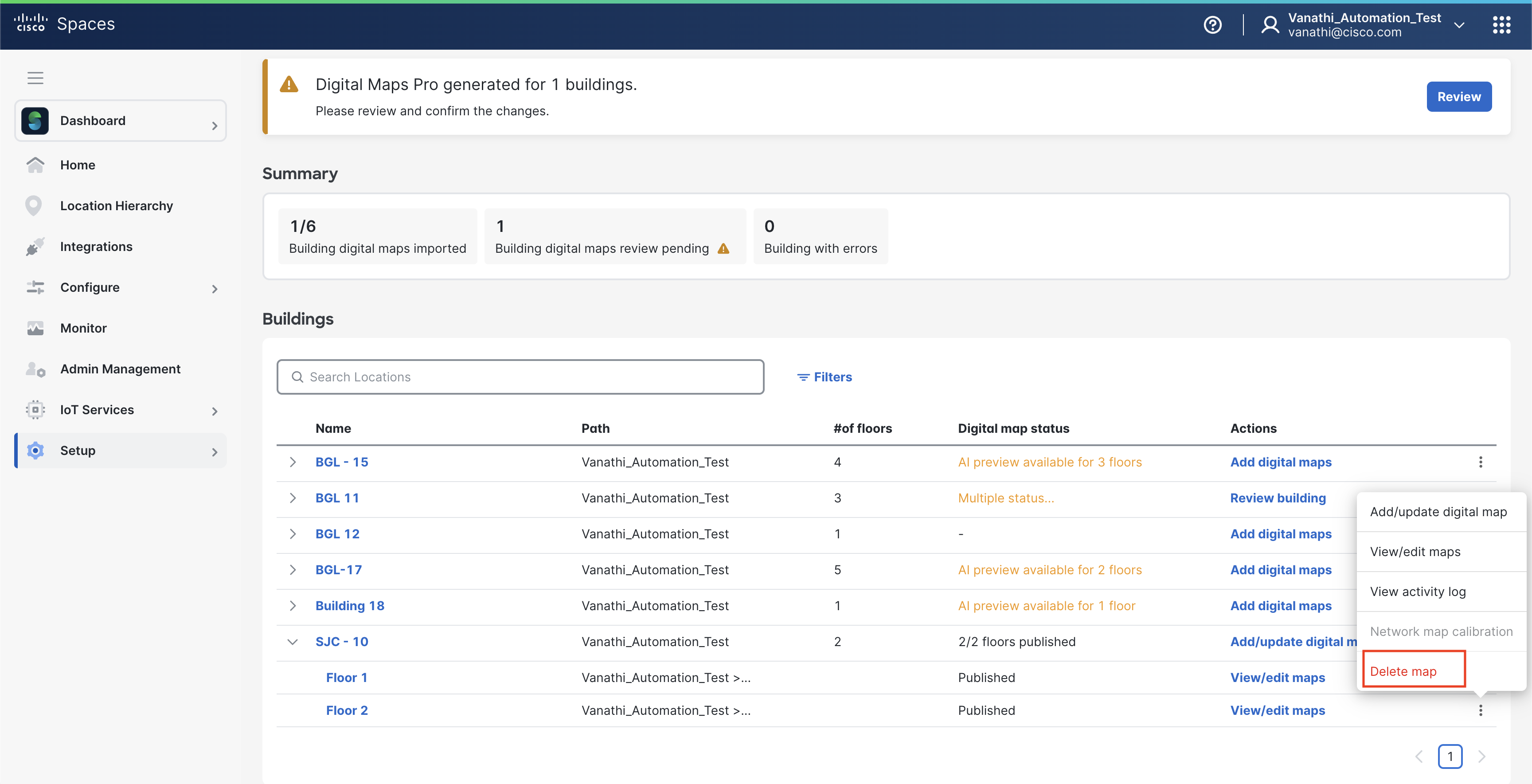 Publish the building to make the Digital Map available in Cisco Spaces.