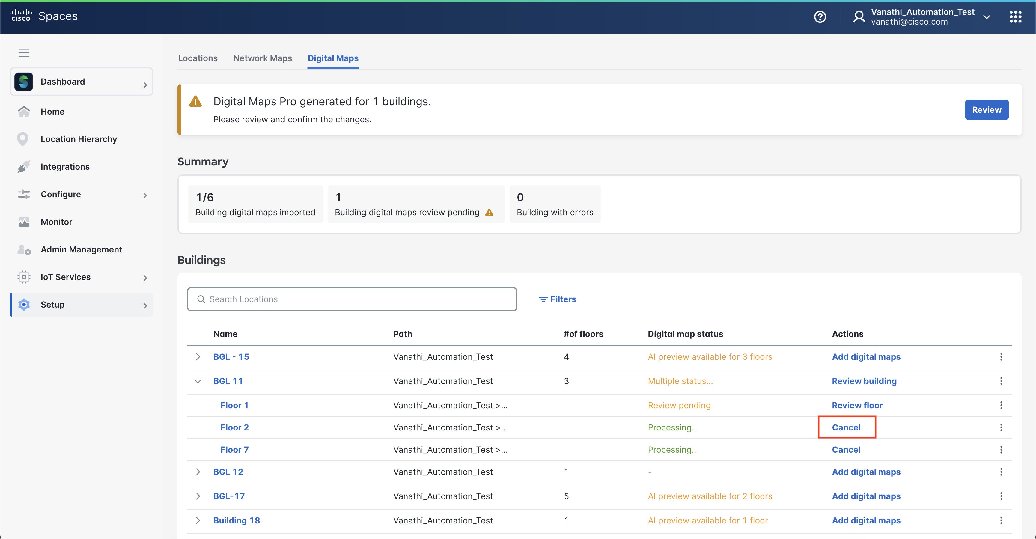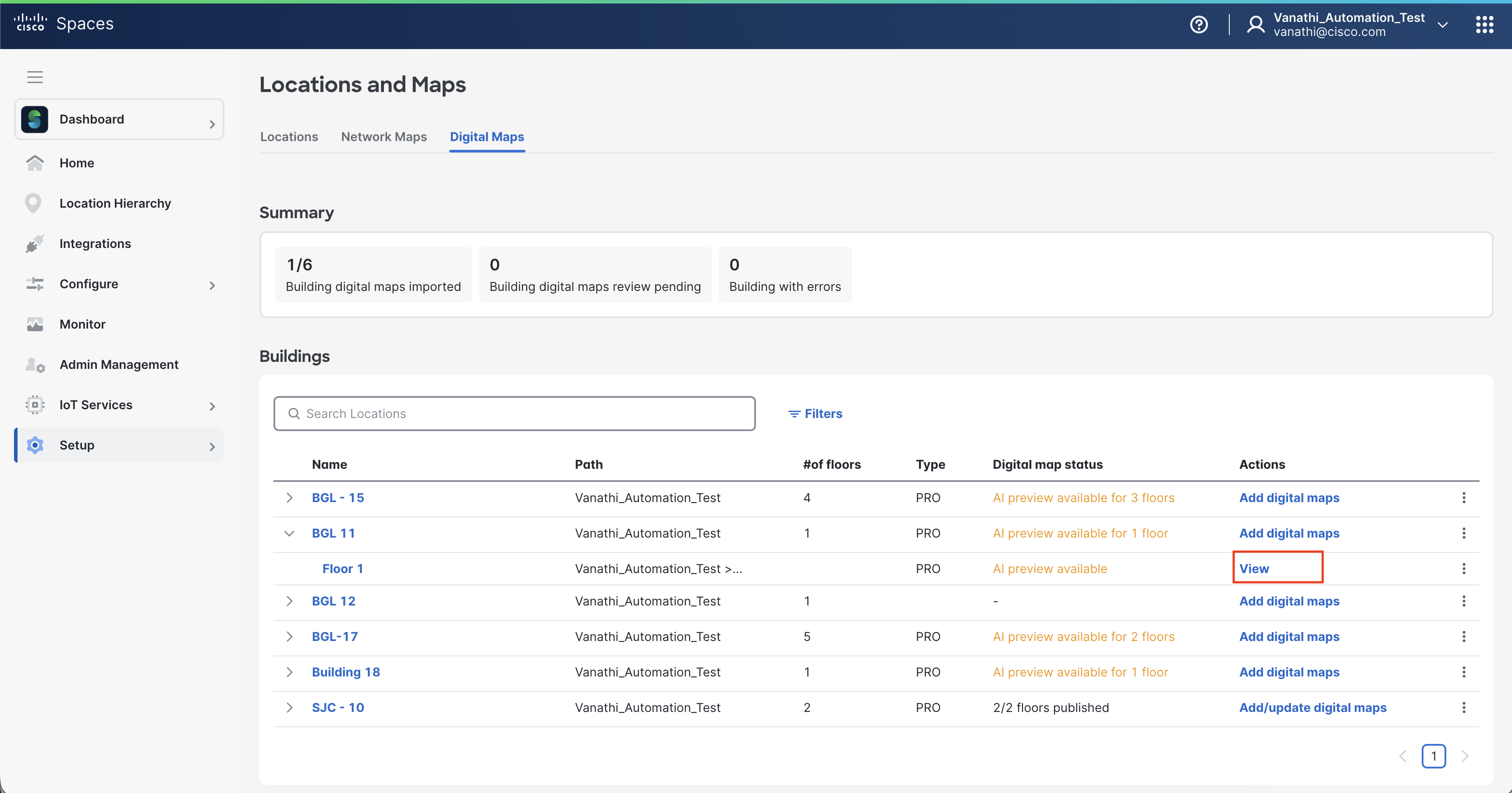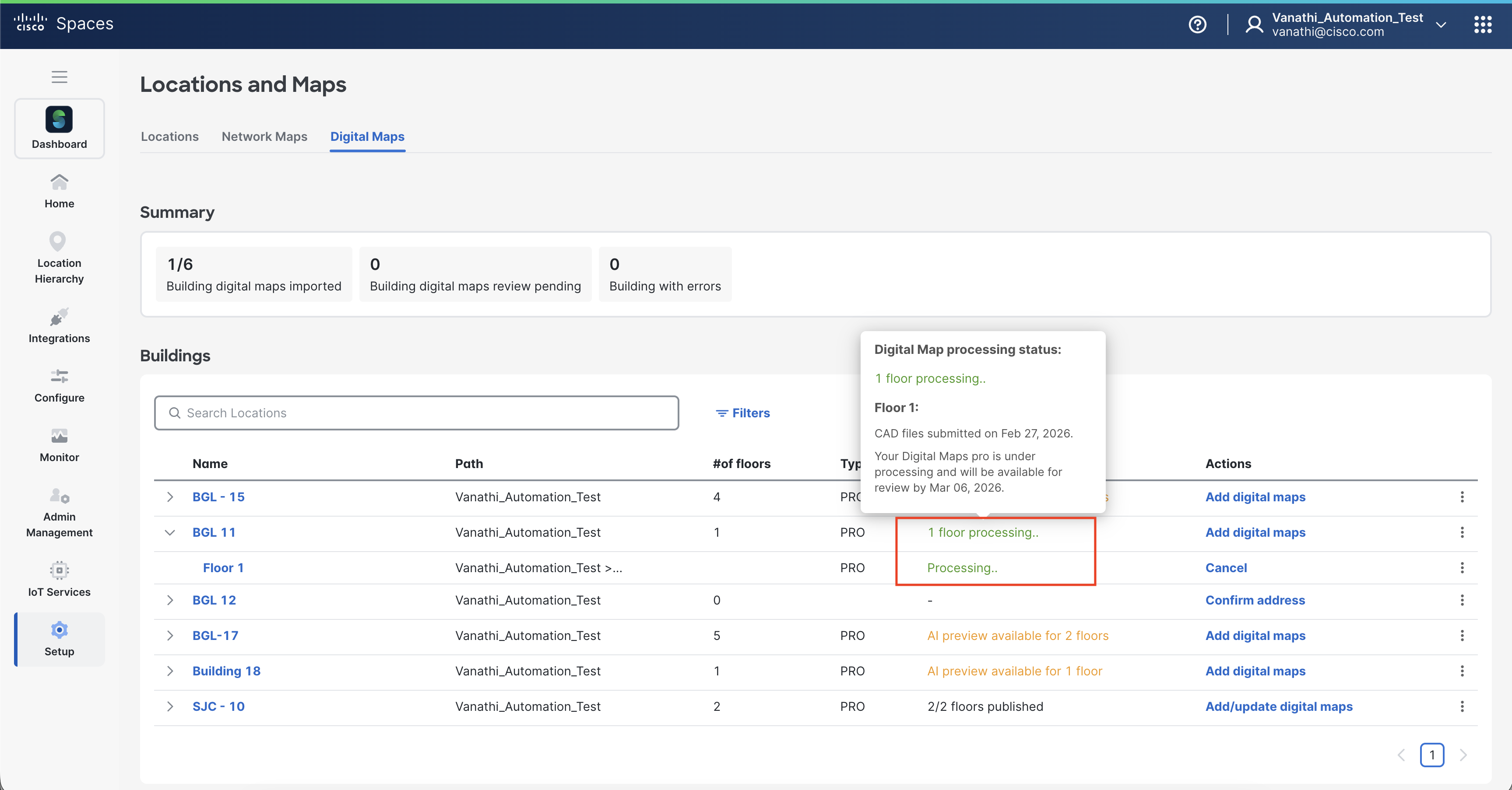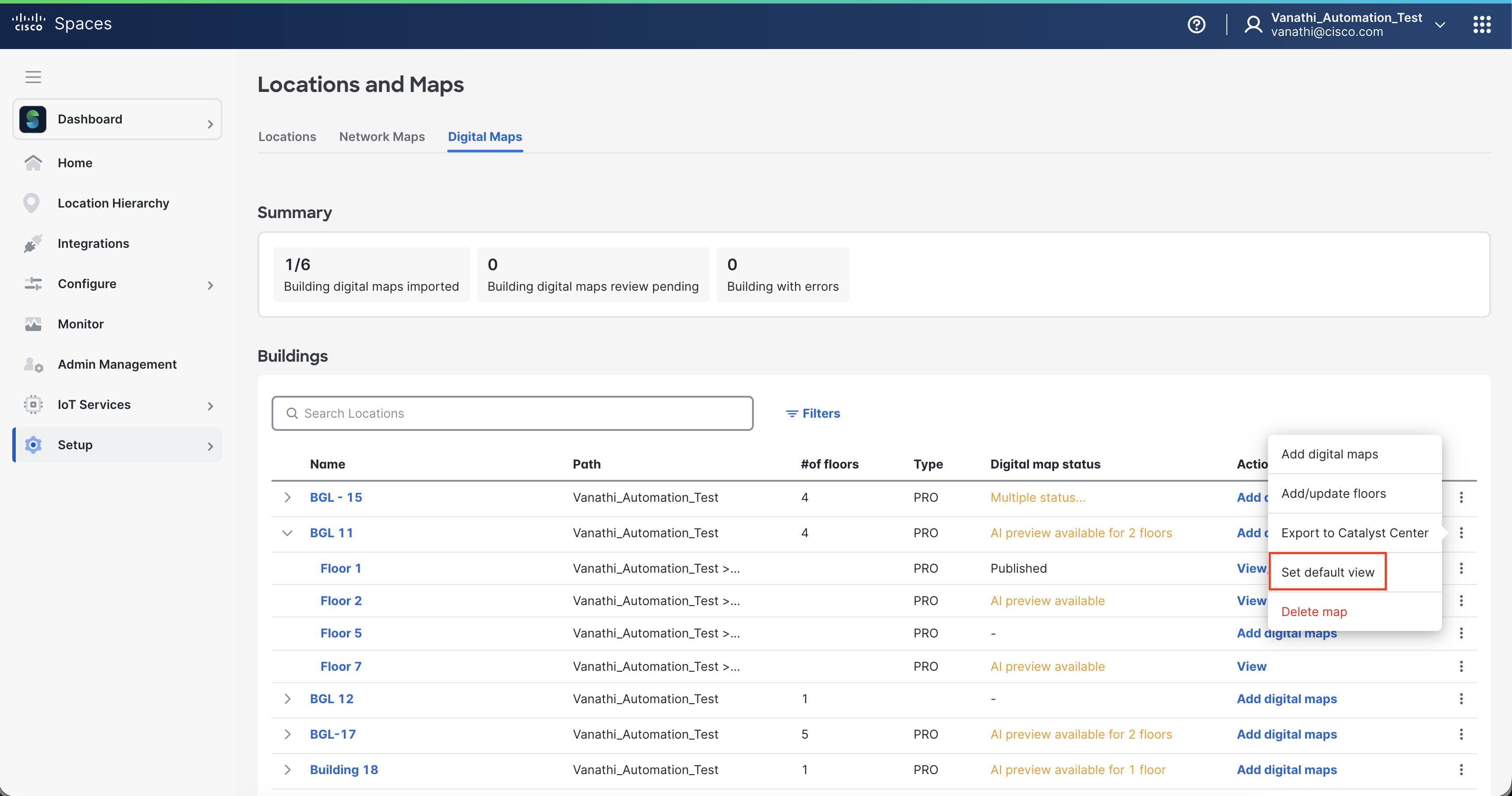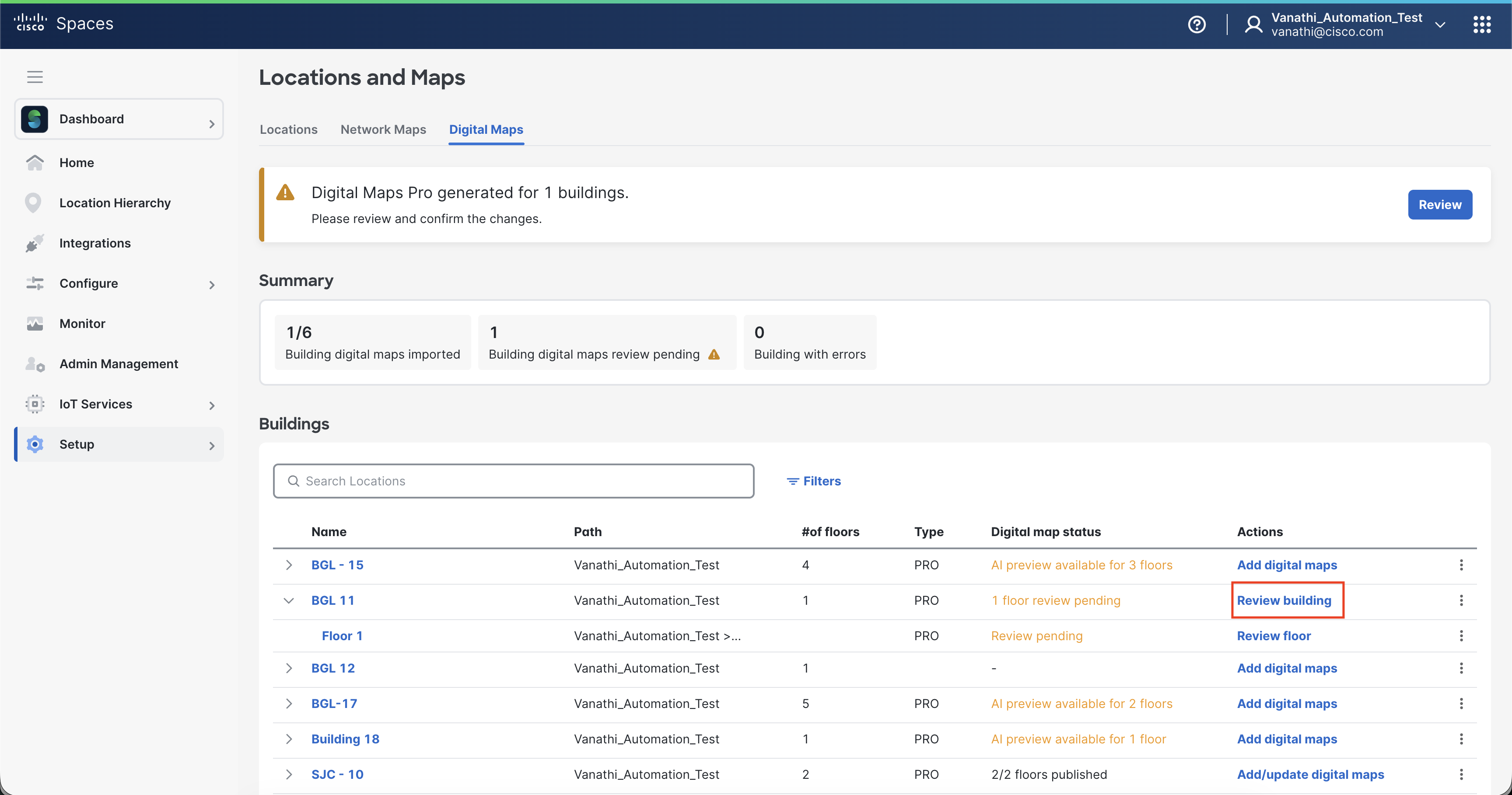 Publish the building to make the Digital Map available in Cisco Spaces.