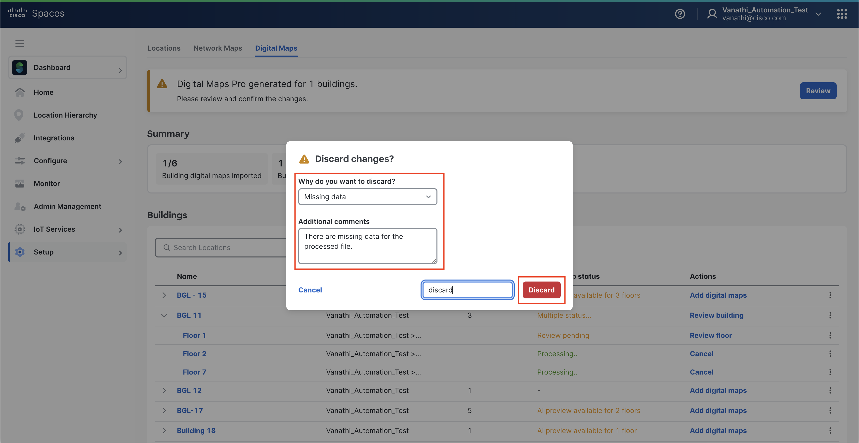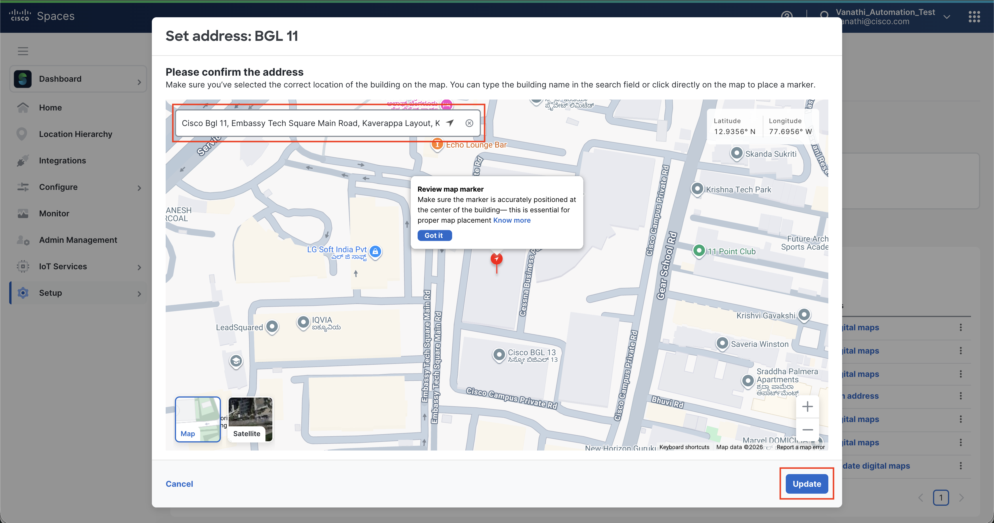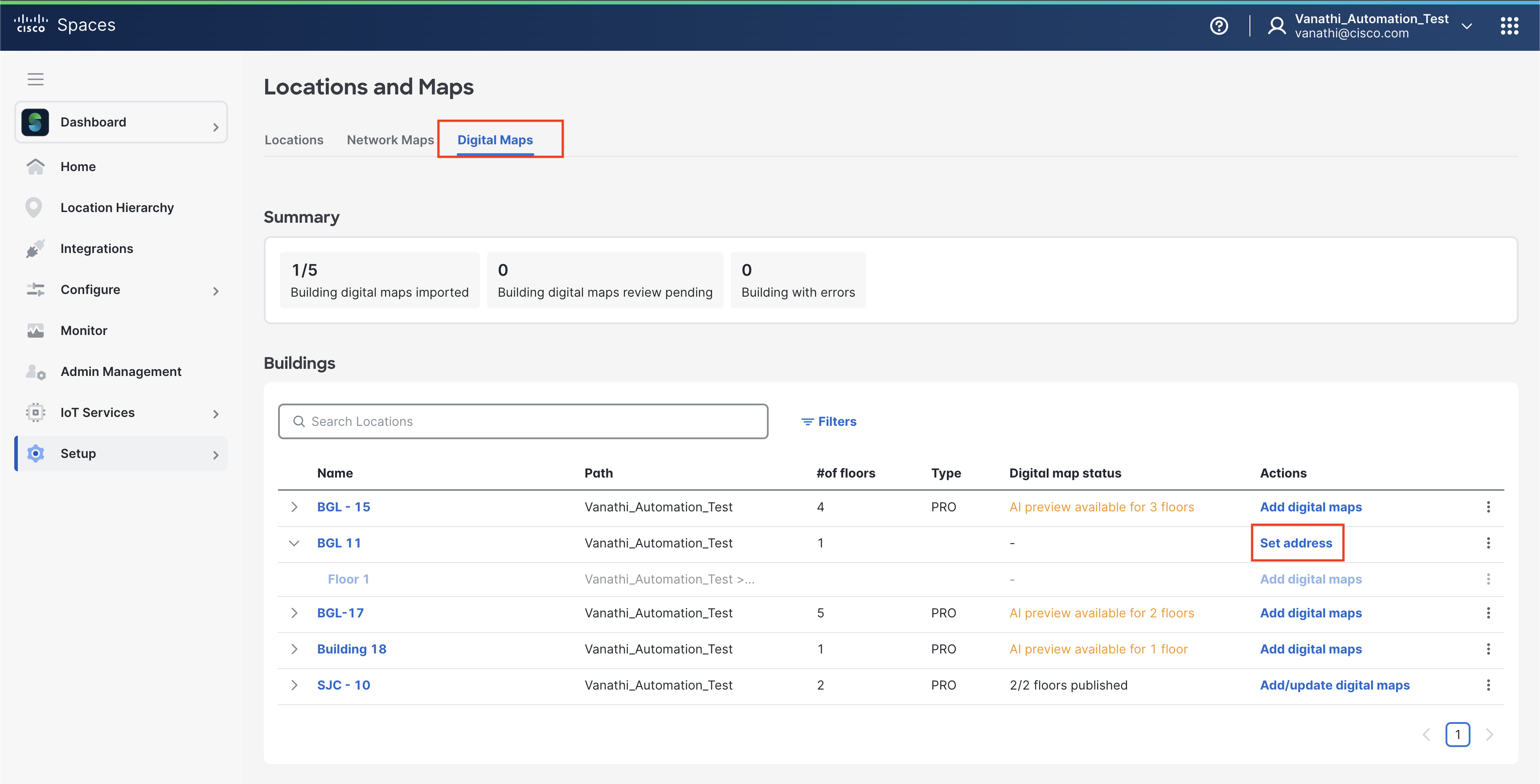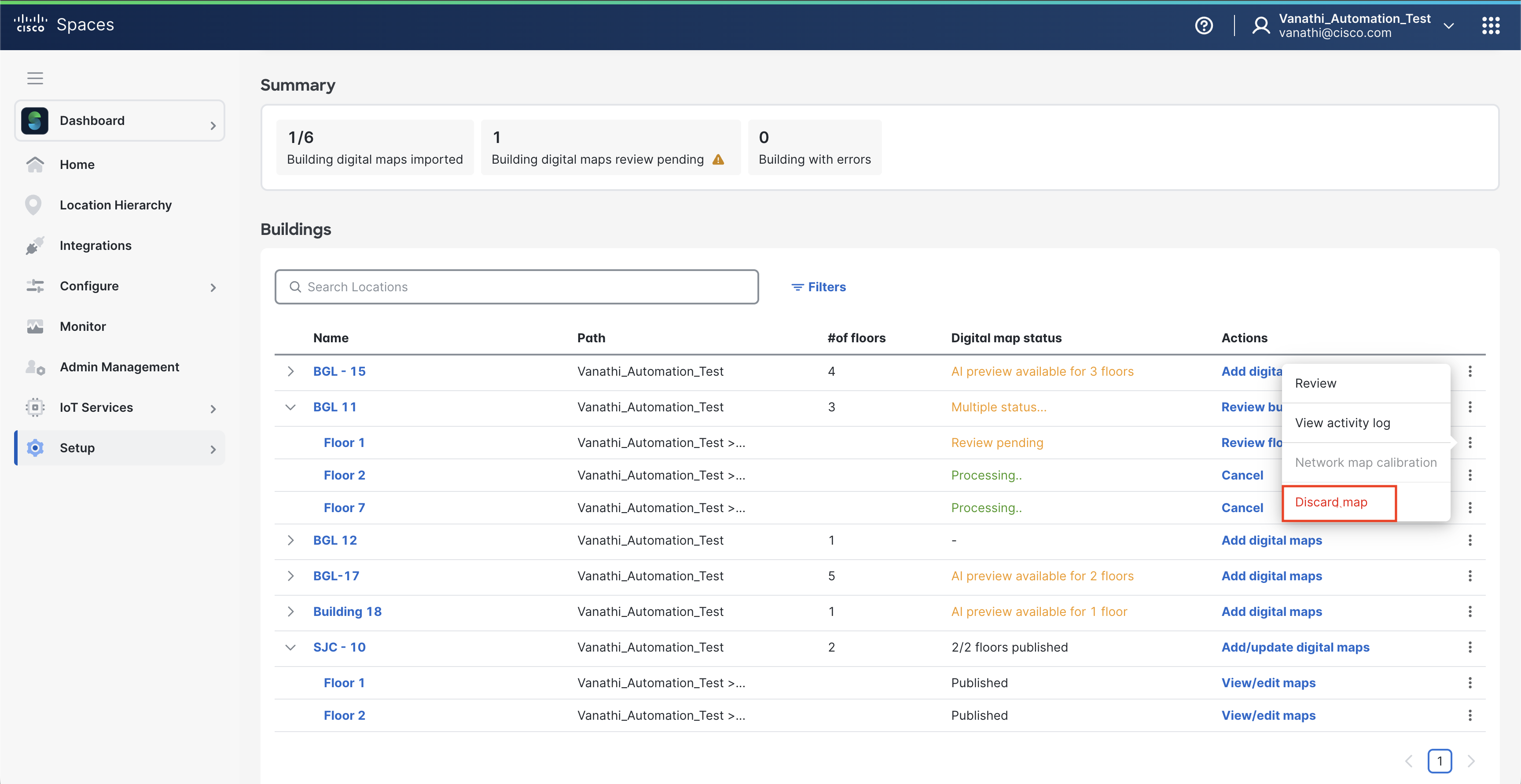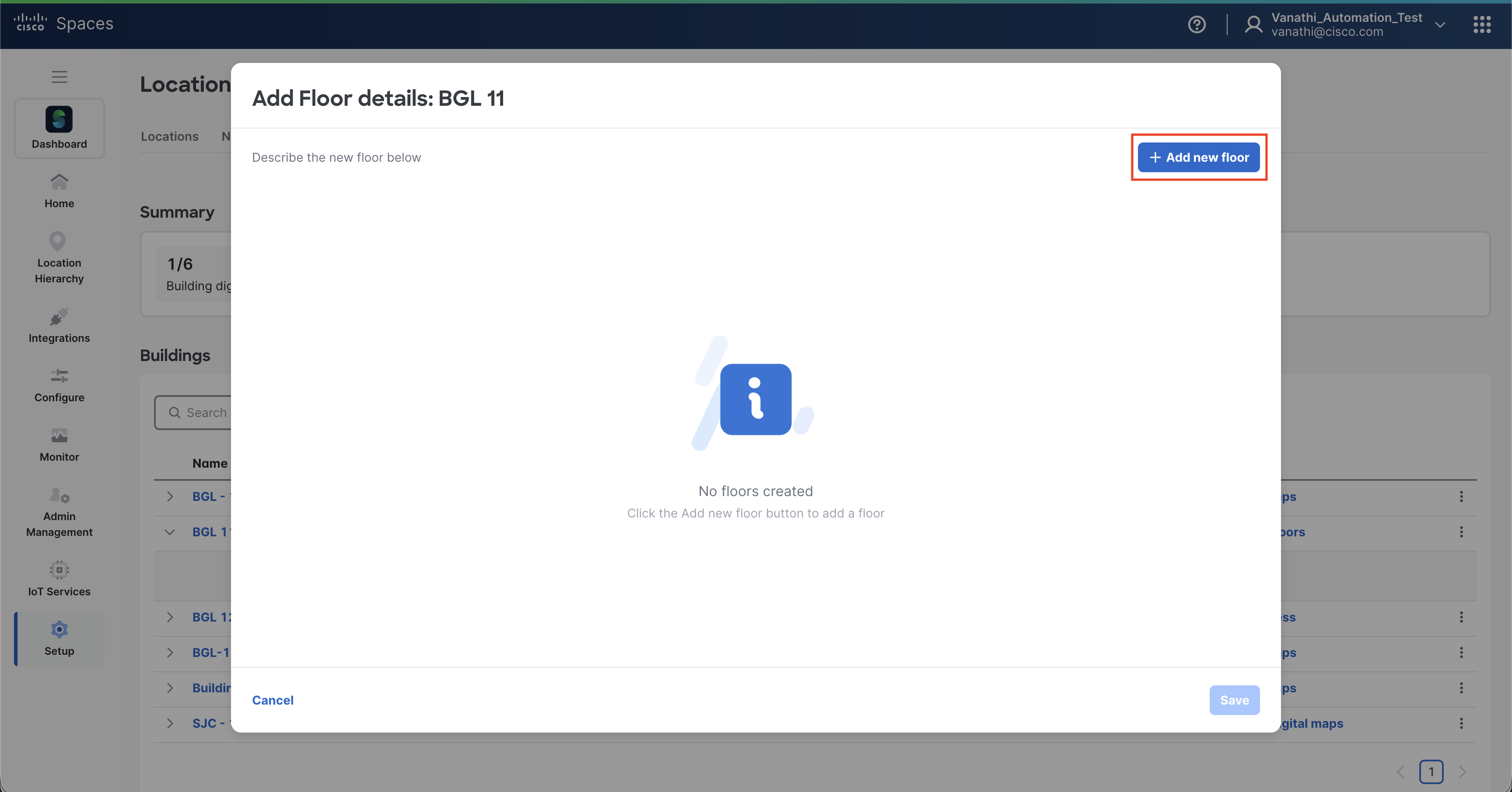 Publish the building to make the Digital Map available in Cisco Spaces.