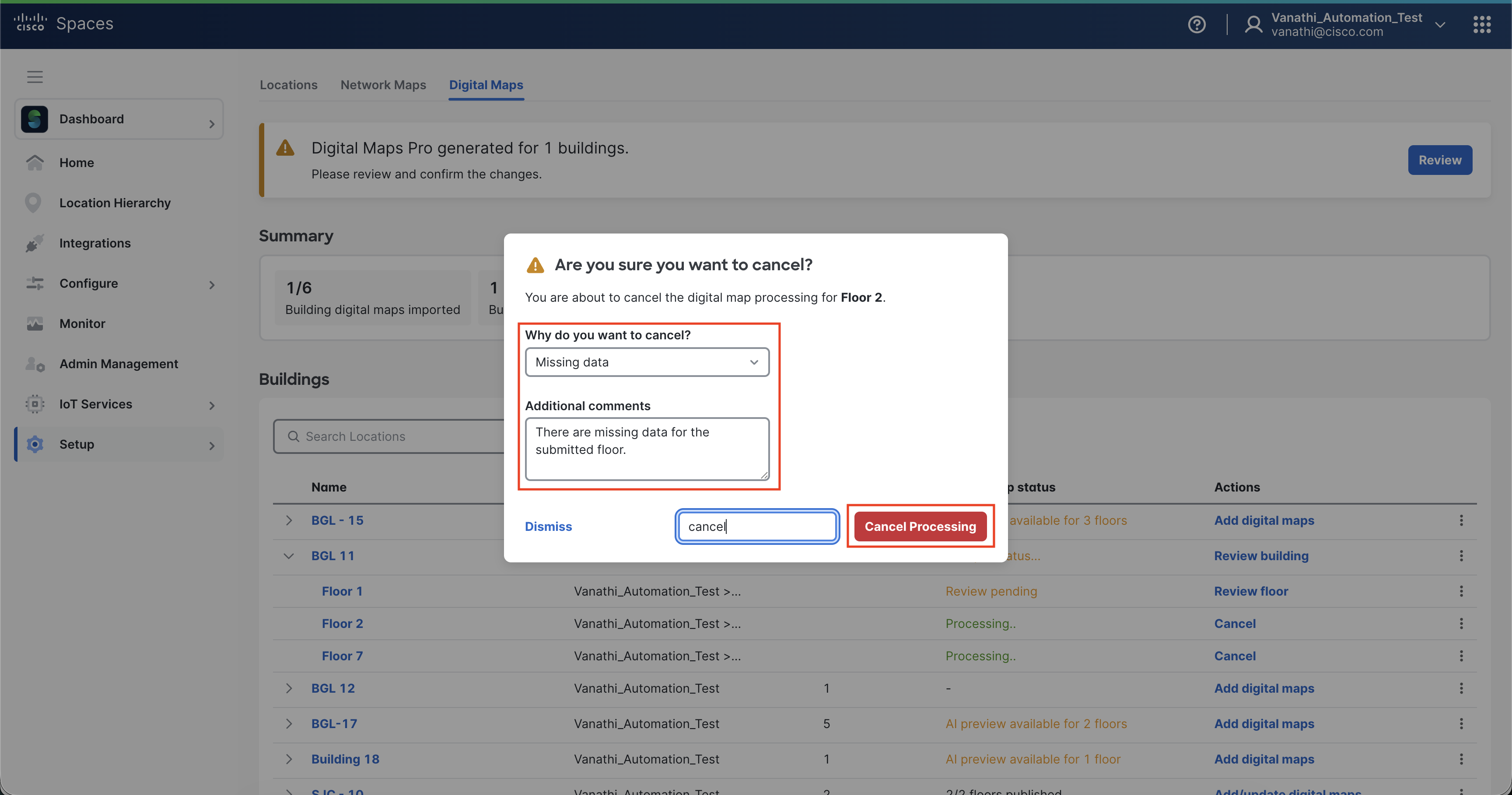 After uploading CAD files for the first time (before finished processing), canceling is perfectly acceptable. Canceling the processing will make it possible to choose different files (if chosen mistakenly or realizing some changes were needed in the file contents) or add/remove files from processing. Otherwise, waiting for the first round of processing (per building) is necessary before adding or removing any floors.