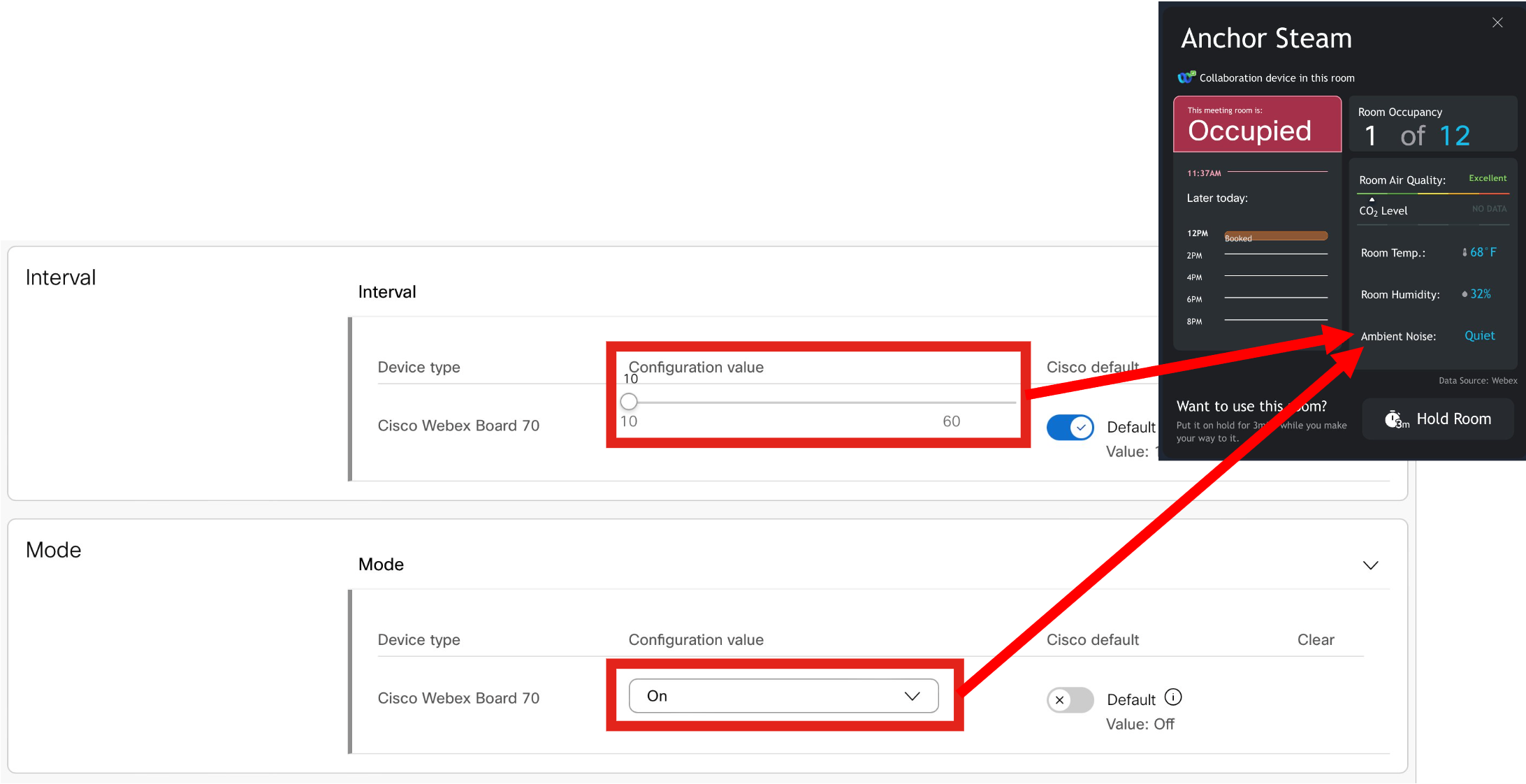 That occupancy data is pulled down from the Cisco Spaces Cloud to the Cisco Spaces OT gateway which connects to your BMS network as a BACnet device. The OT gateway is the only new hardware needed if you already have Webex collaboration devices installed.