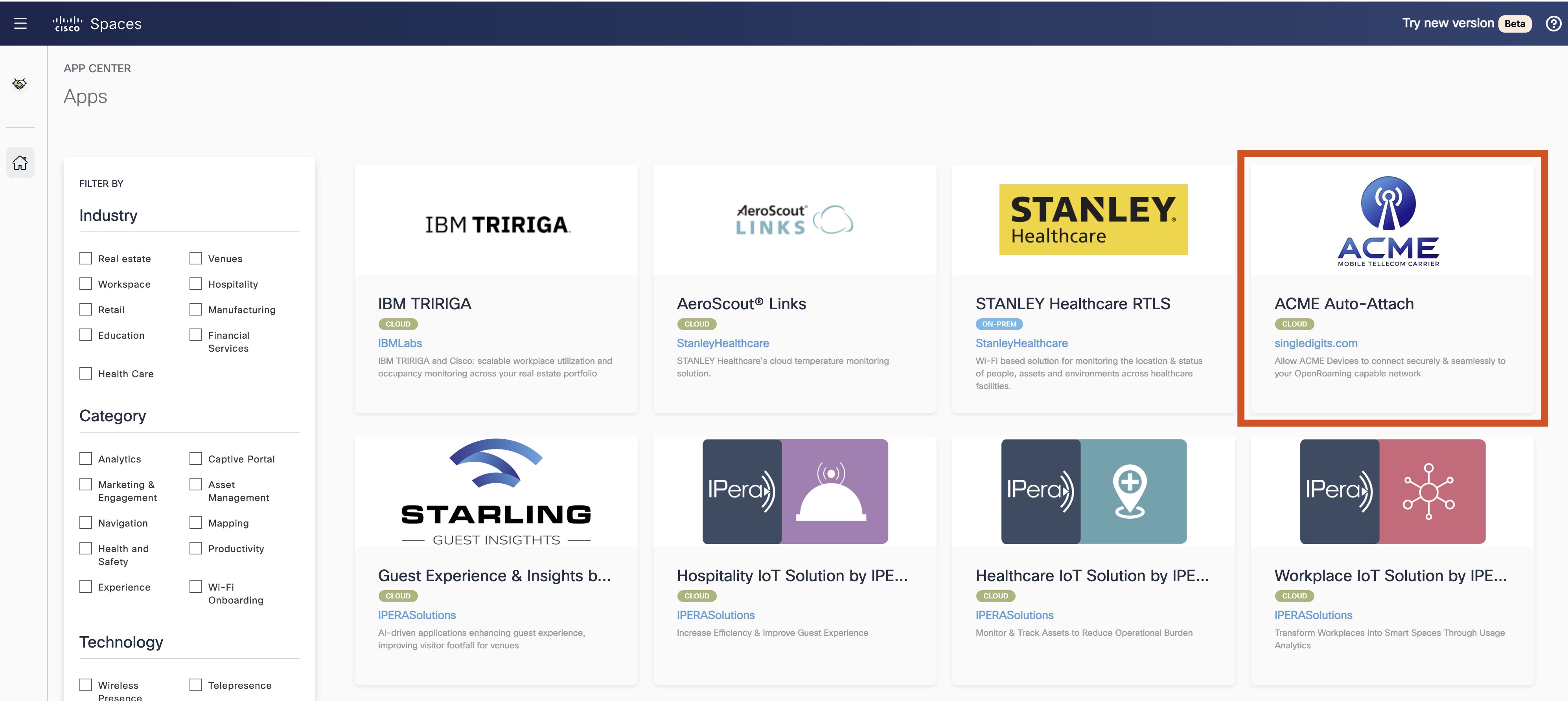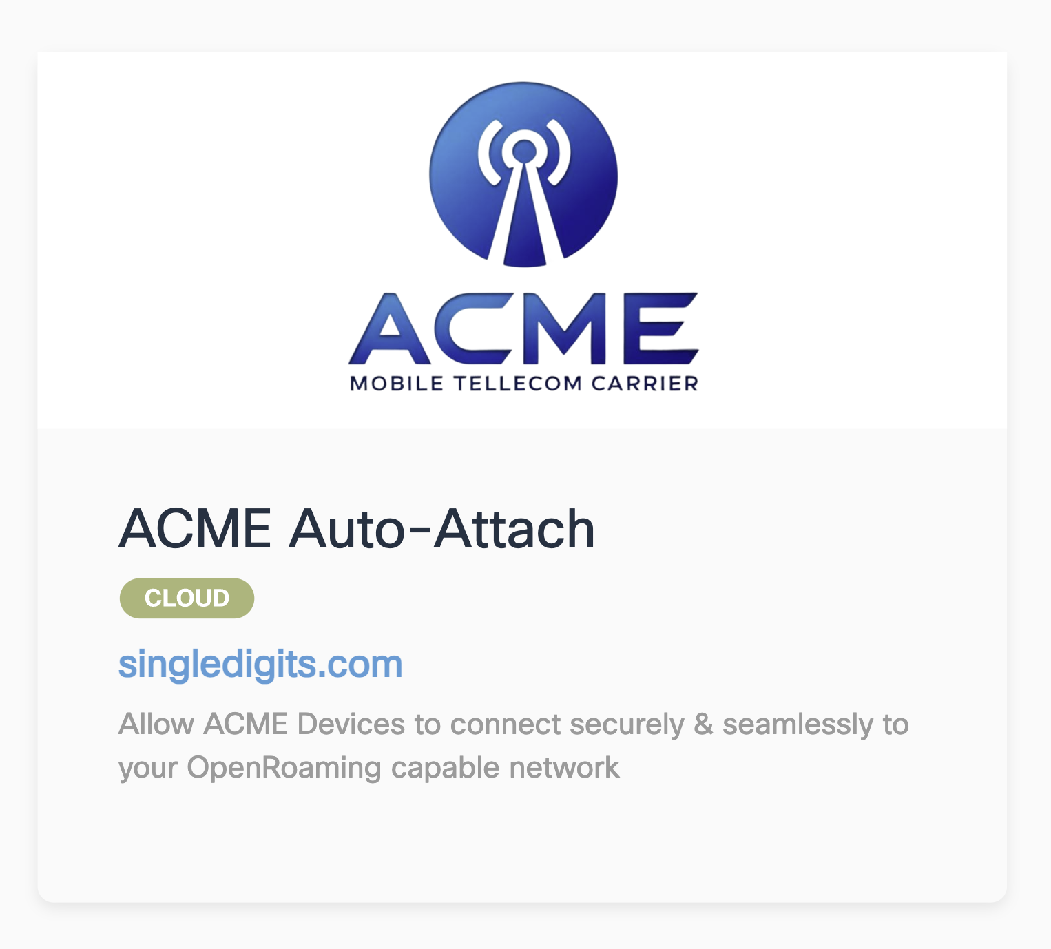 The ACME Auto-Attach Partner App in Cisco Spaces allows businesses to offer Carrier Offload services to ACME mobile network customers. By leveraging Cisco Spaces' existing relationship with one of the world’s largest cellular providers, businesses can seamlessly connect ACME devices onto their wireless network – providing seamless & easy to use connectivity, replacing/supplementing DAS systems & eliminating dead zones.